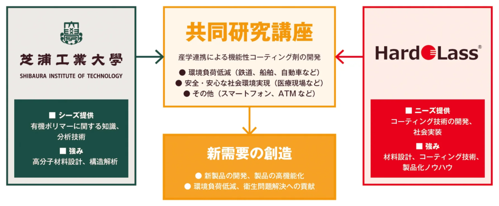 芝浦工大は、「社会に学び、社会に貢献する技術者の育成」を建学の精神とし、実学教育と研究を通じて社会の発展に貢献している。ハドラスホールディングスは、「持続可能な社会に向けて、常識を塗り替える」をミッションに掲げ、ガラス系コーティング技術を通じて環境問題や衛生問題の解決を目指している。