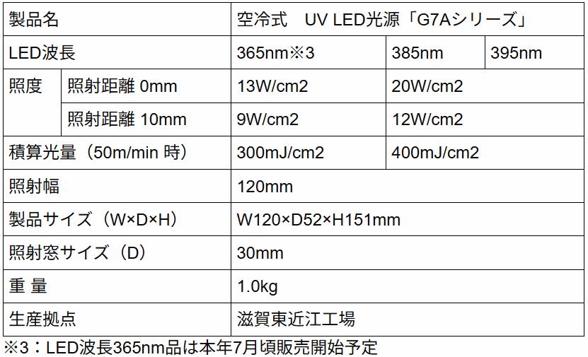 空冷式UV LED光源「G7Aシリーズ」の特長は次の通り。