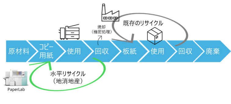 近年、環境意識の高まりやIT化の進展に伴い、ペーパーレス化が推進されている。しかし、紙は依然として私たちの生活に欠かせない存在。オフィスや自治体では古紙の回収・リサイクルが積極的に行われているが、コピー用紙を新たなコピー用紙へ再生する「水平リサイクル」は難しく、付加価値が低い板紙などへのカスケードリサイクルが主流。これには多くの工程やエネルギーを要し、CO₂排出量の増加や、多くの時間がかかるといった課題が残っている。また、機密情報保護の観点から、リサイクルされずに焼却処分されてしまう紙も少なくない。