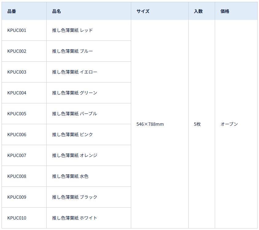 ヒサゴは、フリマアプリの商品やプレゼントなどの発送時に、好きな色(推し色)で包めるカラフルな紙製梱包材「推し色薄葉紙うすようし」全10アイテムを2025年10月1日に発売する。