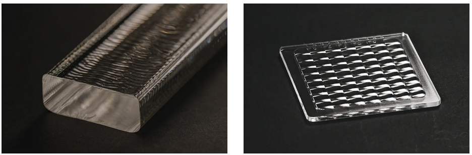 この技術により、非球面レンズや異形レンズ、両面成型レンズに加え、複数のレンズ機能を一体化したレンズアレイやマイクロレンズアレイなどの高度な光学部品を、低コストかつ安定した品質で提供している。