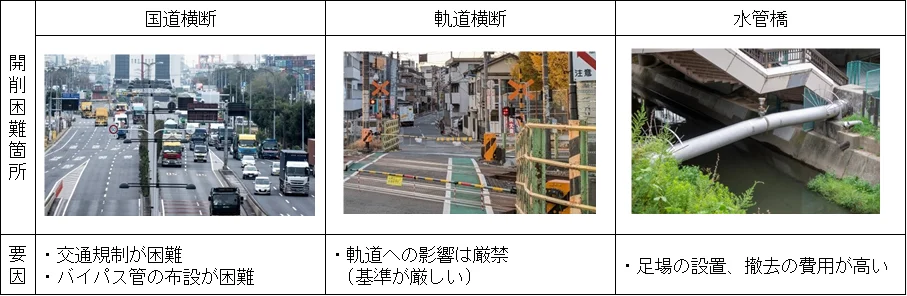 老朽水道管の更新がなかなか進まない要因としては、人口減少や節水により自治体の水道料金収入が減少傾向にあり、更新に必要な財源の確保が厳しさを増していることや、開削工事が難しい区間が多数存在すること、さらには工事業者の不足などが挙げられる。
