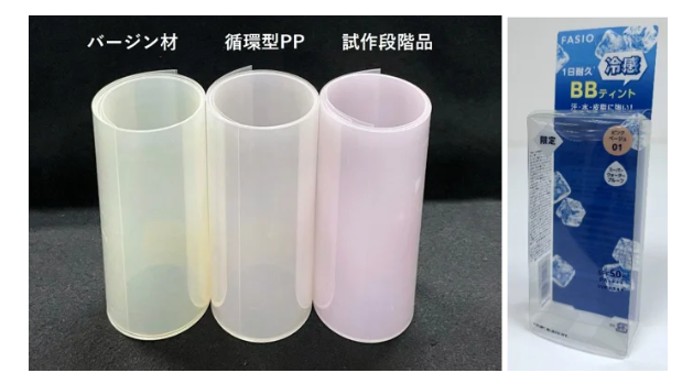 同社は、化粧品の個包装箱としての機能を維持できる透明性と、環境負荷低減につながるリサイクル性を同時に実現したことで、将来的には定番品への採用のみならず、業界に向けて循環型プラスチックという新たな選択肢を提示し、持続可能な社会に貢する。