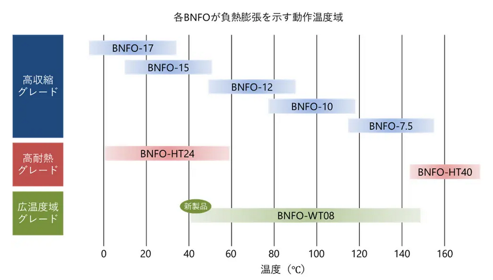 【負熱膨張材料】日本材料技研、BNFOの広温度域グレードを開発