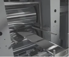 またロール振れ精度±1μmならびに温度精度±0.5℃といった高精度での試験を実現した。さらに、オール電動にしかできない位置制御モードはその高応答性により、リアルタイムに加圧条件を変更しながらの加工が可能なうえ、加圧後の製品厚みを測定できるセンサも具備しており、その場で加工結果が検証できる。材料の搬送速度もMAX120m/minと顧客の量産条件より高速での対応が可能。