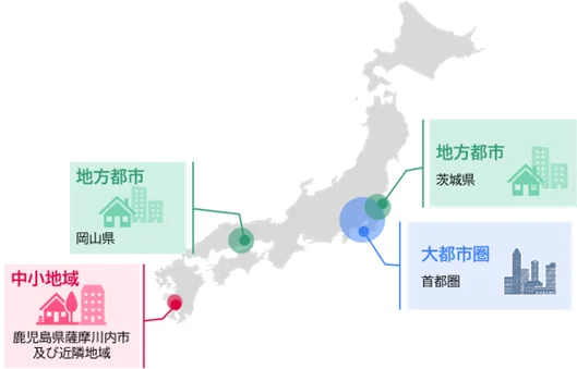 なお、「地方都市」は、岡山県内自治体・茨城県内複数自治体において、家庭排出の廃プラスチックの集約および大規模選別施設での高度選別を実施し、高品質再生材の製造と効率的な循環モデルを検証する。