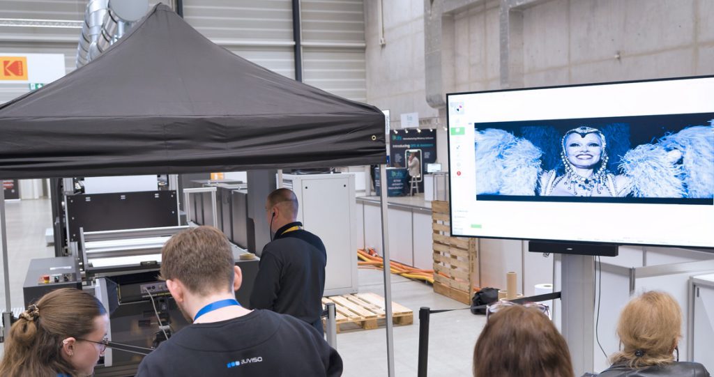 〈2025年3月4日、ニューヨーク州ロチェスター発〉コダックは、スイスのルツェルンで開催された Hunkeler Innovationdays 2025 で、KODAK PROSPER 7000 Turbo プレスで印刷したアプリケーションが話題を呼んた。業界メディアやアナリスト向けのイベントで、コダックは、映画「ラスト・ショーガール」と2つのミュージック・ビデオ(Kesha’s JOYRIDEとAntsLive’s CAPTAIN ANTS)から切り取ったシーンを連続で印刷することで、ヨーロッパで初公開された世界最速の輪転インクジェット印刷機のスピードを実証した。これらはすべて、投影されている映画の効果をシミュレートするために KODAKフィルムで撮影された。