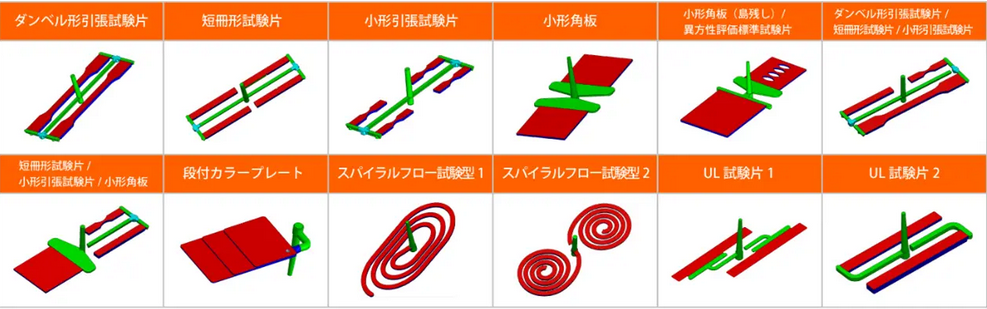 このため、JISなどの各種規格に準拠した試験片の成形頻度が増加していますが、金型一式の製作・交換に多大なコストと工数がかかる点が課題となっている。