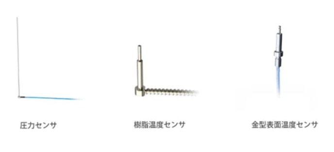 カセット式樹脂試験金型は、目的や用途に応じて同社製の「金型内センサ」を搭載できる。金型内センサを活用することで、金型内の圧力、樹脂温度、金型表面温度などを正確に計測でき、試験片の成形プロセス監視やトレーサビリティ管理を実現。また、金型内センサは固定側インサートに搭載できる設計を採用しているため、可動側インサートを別タイプに交換した場合でも同一の計測環境を維持したまま計測できる。