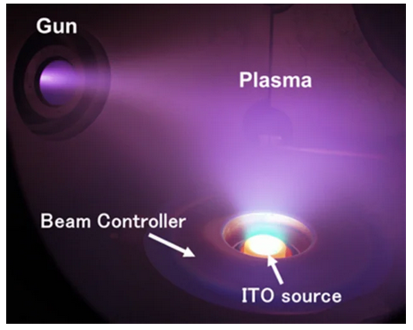 (※2)反応性プラズマ蒸着法(RPD: Reactive Plasma Deposition)。プラズマガンから放出される電子を磁場により蒸発材料に導き、加熱により昇華した材料を高密度プラズマ中で活性化させることで高い反応性を持たせた当社独自の成膜方法です。高反応性と基板へのダメージの低さが特徴で、結晶性の良い膜を形成できる。