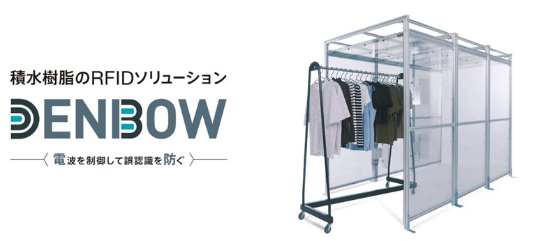 積水樹脂は、RFID業界で課題とされている多重反射波による誤認識の問題を解決し、同時に工場や倉庫において作業者の視界を確保(安全性)する、透明電波吸収パネルのソリューションシステムを「DENBOW」と名付け、第1弾として、「ウォークスルーゲートシステム」を2025年4月に発売した。