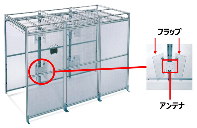 フラップをアンテナの横に配置することで透明電波吸収パネルの角度を自由に変更し、読み取りエリアを制御可能に