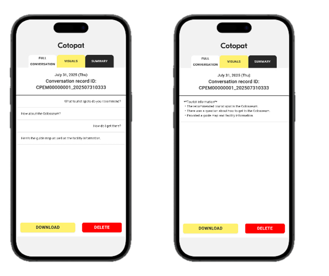 会話ログを記録※2し、生成AIで要約を作成してQRコードで来訪者に提供できる。また、その場にいない家族や同僚、関係者にも内容を共有することができる。