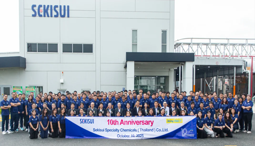 積水化学工業のタイの連結子会社である、SEKISUI SPECIALTY CHEMICALS (THAILAND) CO., LTD.(取締役社長:中島利行、以下「SSCT」)は、工場の稼働開始10周年記念式典と併せ、第2工場の竣工式を10月10日にタイ東南部マプタプットのヘマラートイースタン工業団地内にある工場敷地内において開催した。
