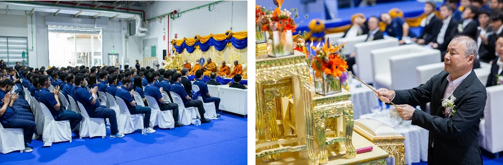 同式典はSSCT従業員や積水化学工業の関係者、SSCT設立に携わったOB・OGなど総勢138名が出席して、バラモン式典から始まり、続いて仏教式典を執り行い、出席者一同、これまでの10年間への感謝を表すとともに、関係者の安全と健康、そして今後のさらなる発展、成長を祈念した。