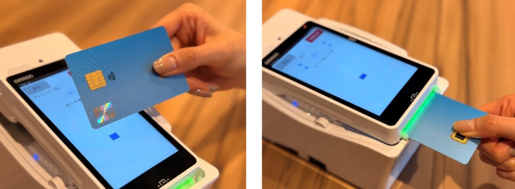 指紋認証カードでは、取引時にカード上で指紋による本人認証ができるため、スマートフォンと同様に金額上限のない非接触決済が可能となる。また、ICカードを挿し込む接触決済でも、指紋認証にて本人認証を行うため、暗証番号入力が不要となる。指紋認証機能を導入することにより、カード会員様の利便性を高めながら、セキュリティの高い決済が可能となる。
