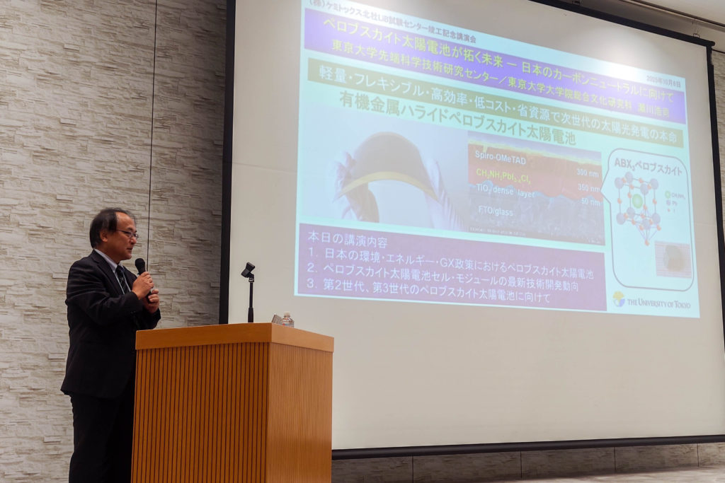 同セミナーでは、東京大学 先端科学技術研究センター教授の瀬川浩司氏をはじめ、京セラ代表取締役社長 谷本秀夫氏、同社副社長 坂本清彦氏およびPV試験評価チームリーダー 栗本晴彦氏が登壇し、ペロブスカイト太陽電池・リチウムイオン電池・半固体電池の最前線について講演を行った。