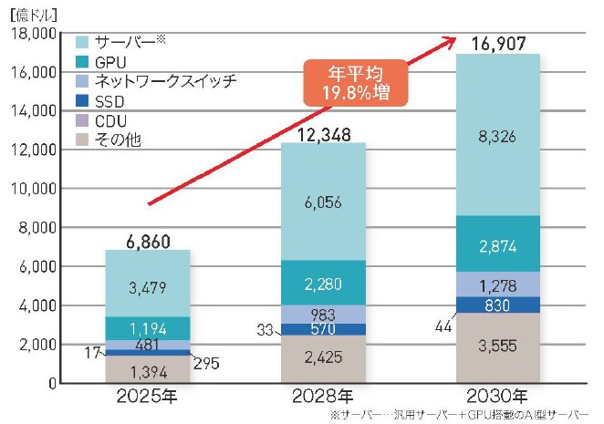 電子情報技術産業協会(JEITA)は、2025年12月16日、データセンターの国内外の動向をまとめ、データセンターサービスおよび関連製品の市場見通しを発表ました。この調査は、主要国政府の政策や海外先進企業の動向など公知情報の分析と、国内外先進企業へのヒアリングをもとに需要を推計したもの。