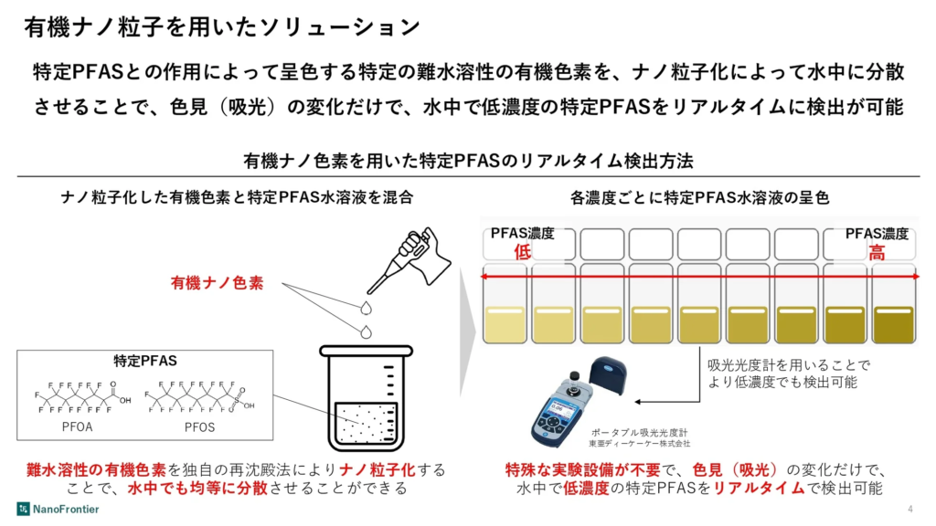 【nano tech 2026+InterAqua 2026】NanoFrontier、特定PFASの低コスト・リアルタイム検出を可能にする有機ナノ粒子技術公開