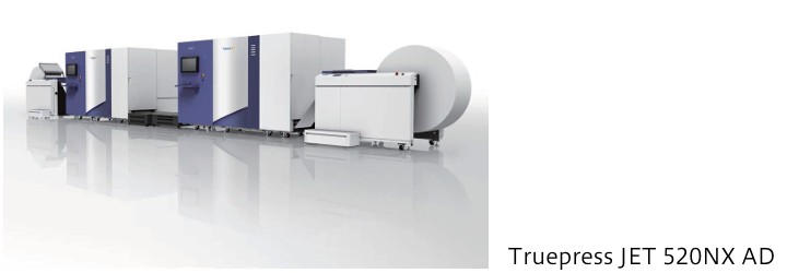 トランザクション印刷向けには、「Truepress JET 520NX AD」を紹介。最高印刷速度225m/分の超高速生産により、短納期が求められるトランザクション印刷に最適な機動力を提供する。さらに、独自のビルトイン検査機「JetInspection」の搭載や、オペレーターの負担を軽減しつつ生産性も向上させる自動ノズルクリーニング機能、ノズル制御による品質補正機能などにより、定評ある印刷品質を実現する。