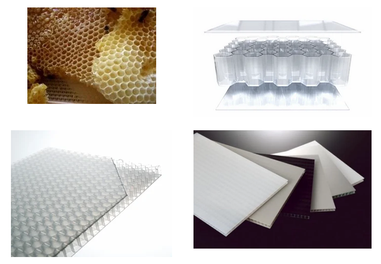 テクセルは、熱可塑性樹脂の連続成形技術による樹脂製ハニカム構造体。蜂の巣状に構成され、力学上最も優れた中空構造体であり「軽量・高強度」を特長とする。