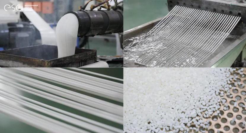 esa独自の「esa method」により、これらを再生ペレット化し、従来不可能だった領域の資源循環を実現する。