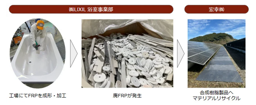 LIXILは、宏幸と協業し、2025年1月10日より、ユニットバスの浴槽・床などに使われるFRP(繊維強化プラスチック)のマテリアルリサイクル(※1)を開始した。