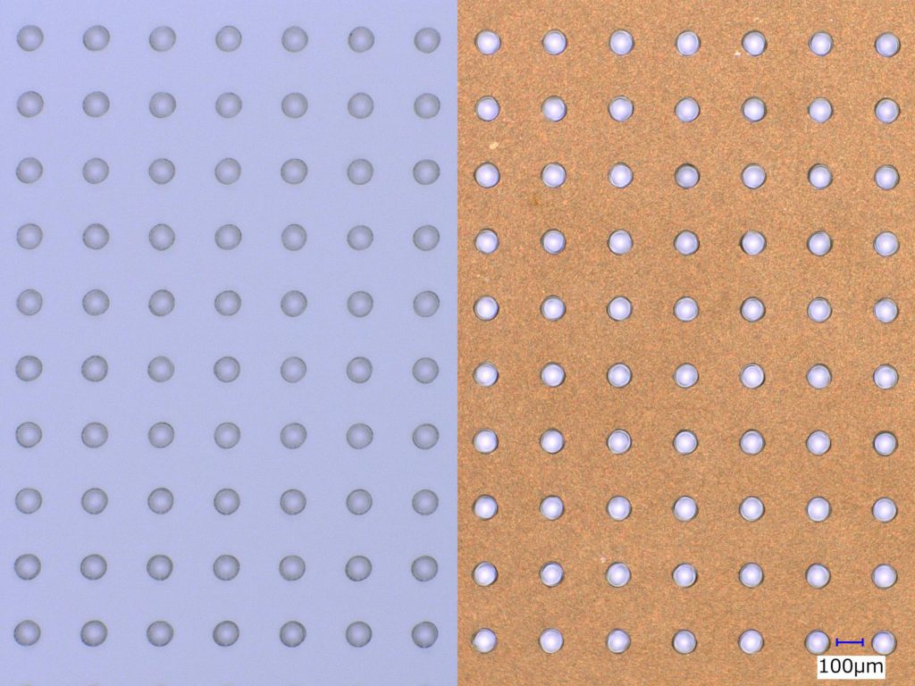 アキレスは、同社独自のポリピロールめっき法を用いて、貫通孔付きガラス基板への高密着めっき膜形成を可能にする技術を新たに開発した。同技術は「SEMICON Japan 2025」の当社ブースに出展する。