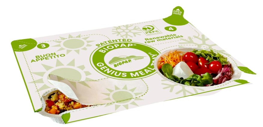 Biopap® solutions enable food waste and packaging to be processed together, transforming waste into valuable resources such as compost and biogas. A cradle to grave lifecycle assessment, demonstrates that Biopap Genius Meal Trays® allow for a 66% reduction of carbon footprint when compared to conventional polypropylene (PP) trays. Beyond emissions reduction, the company emphasises the importance of biological circularity, returning nutrients from food waste back to the soil, improving biodiversity, water retention, and reducing reliance on fossil-based fertilisers.
