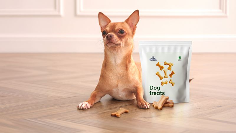 Pet treats are often oily and aromatic and have traditionally relied on plastic or aluminum laminates or papers with PFAS-based grease barrier. Royal Vaassen’s fibre-based Barryrwrap concept does not compromise the performance required for such a demanding end-use, the solution is designed to meet the strictest requirements, including aroma, grease, light, moisture and oxygen barriers.